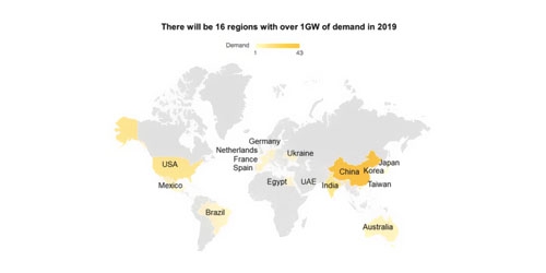關于2019年上半年,剖析師估計需求疲軟,首要是因為三個原因:首要,是時節要素,例如我國的陰歷新年,其次,Top Runner方案中只要一小部分項目將在上半年完結。第三個原因是,第一季度需求一般較高的國家,如印度,日本和澳大利亞,或許會看到比往常增加更少的現象。因而,剖析師猜測下一年中期將進一步降價,4月份價格最低。