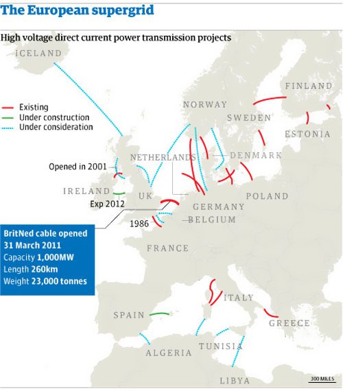 荷蘭輸電體系運營商滕特公司正在完結銜接荷蘭與德國的380千伏高壓直流海底電纜工程,輸電容量到達1-2吉瓦。